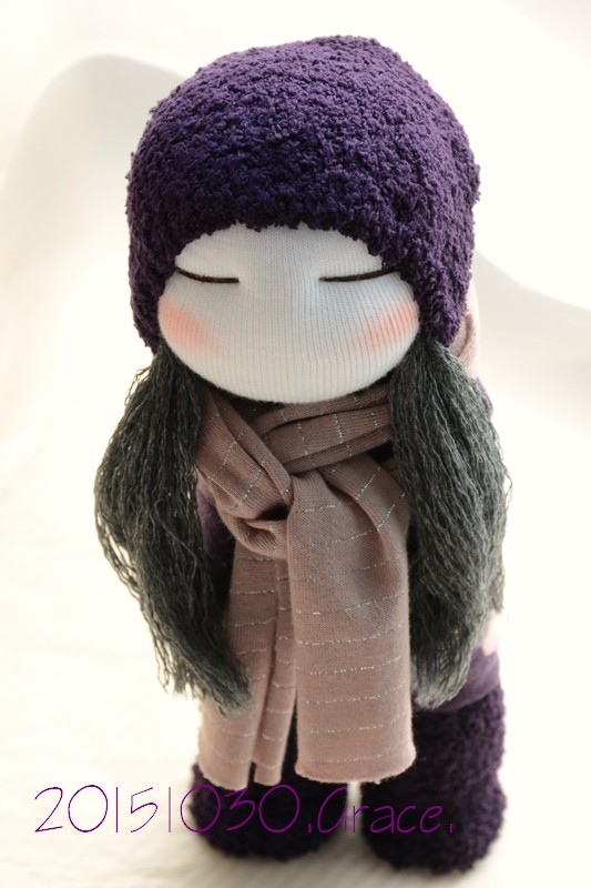 襪子娃娃231號紫靴女孩(她也會自己站著喔!)(己售出)