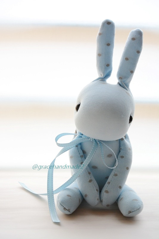 襪子娃娃429號粉藍點點兔 (2)