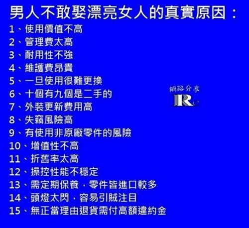男人為什麼不敢娶美女?(網路分享)