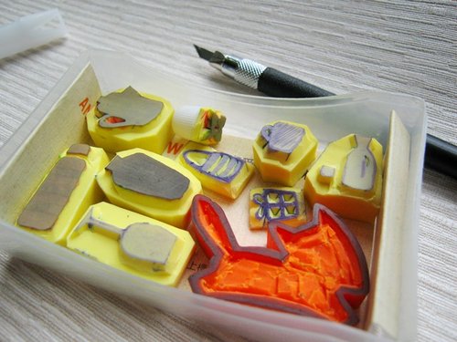 幾年前 我早就把刻橡皮章的道具都傳好了