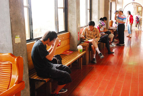 在這裡卻連張桌子也不給 每個人都吃得很委屈克難