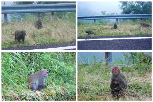 回程開車下山時 在公路邊出現了4、5隻猴子