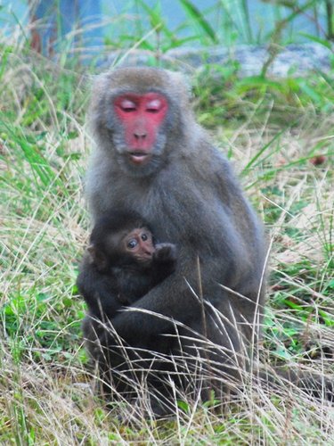 還有小小猴緊緊抱著猴媽媽的畫面 好可愛!