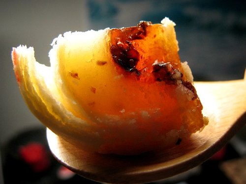 切開來 發現那有如琥珀又如琉璃般的半透色澤