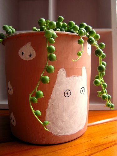 因為本來只是想在素燒底色上畫滿白色圓點而已