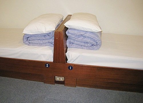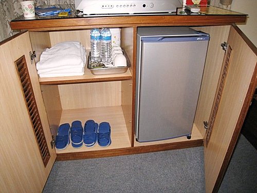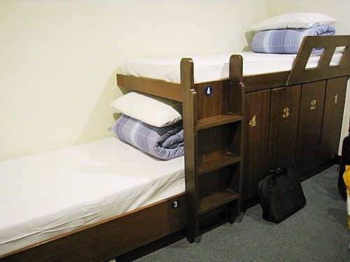 房間裡設備極簡單 除了4張單人床 及墊高床位下的4小口衣櫉