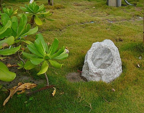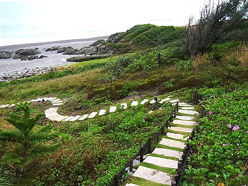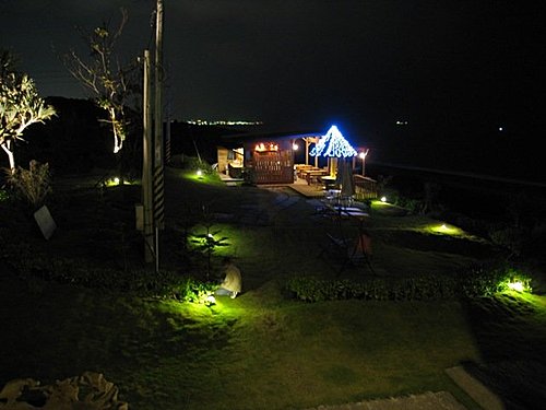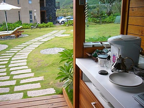 開下緩坡 就看見充滿南洋休閒風的庭園造景