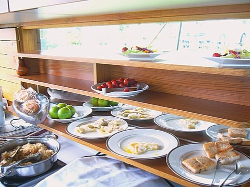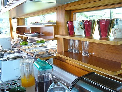 早餐就在小木屋裡取用 營養又豐富 中西餐點都有