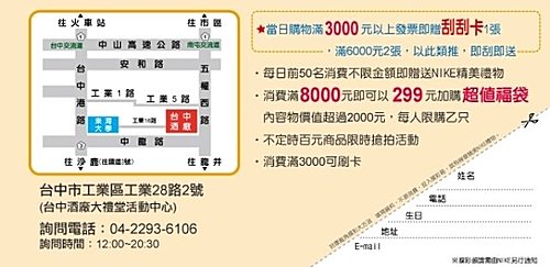 ※ 每天前50名消費的來賓,不限金額馬上送NIKE精美禮物