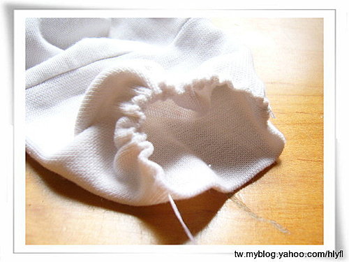 在袖口以平針縫上一圈 不必縫太密 等一下要拉緊線做縮口