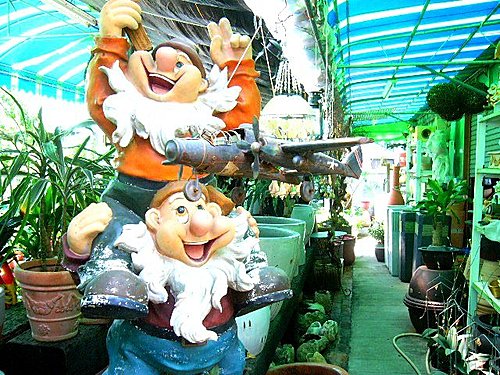 吸引我目光的不是這兩個可愛的小矮人 而是隱身在其中的銅?鐵?老飛機!!