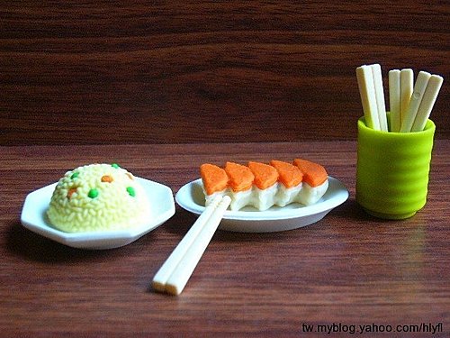終於買到心愛的袖珍小物 --- 中華料理組 NT.99 是造型橡皮擦耶!!