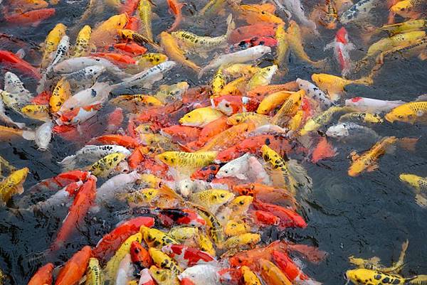 都被這些嚴重搶食飼料的錦鯉逗得好開心